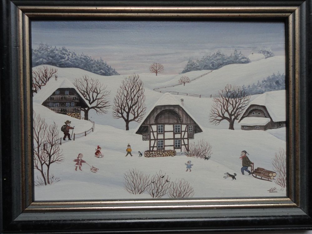 GEMÄLDE NAIVE MALEREI Winterlandschaft sig. Rowold 74 - EUR 180,00 | PicClick DE