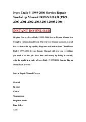 Iveco Daily User Manual Iveco Daily 3 1999-2006 Service Repair Workshop Manual Download (1999…